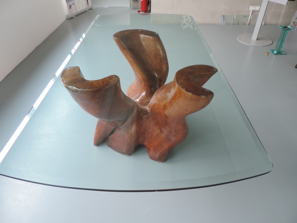 Tavoli e vetrinette e mobili vari in vetro con incollaggio a raggi U.V.