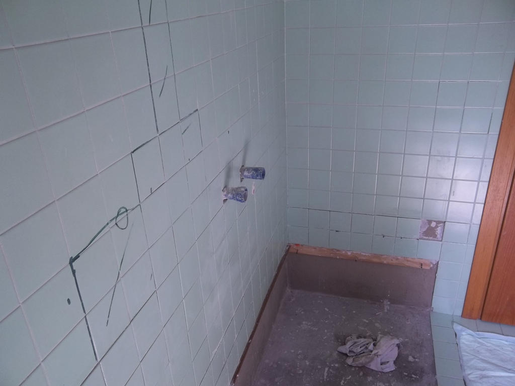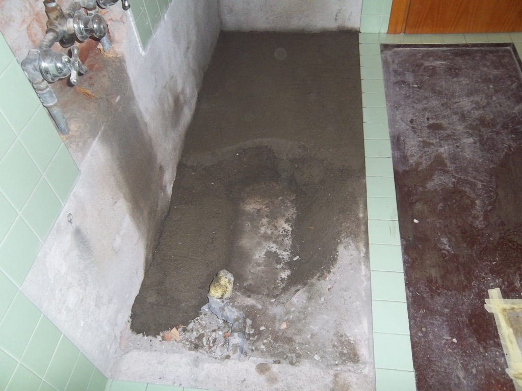 Smantellata completamente la vasca e preparata la sede per il piatto doccia in questo caso su misura.