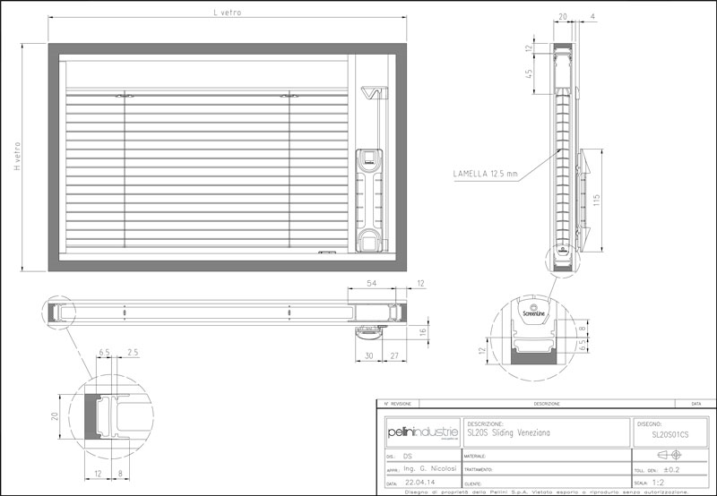 Esiste ed è sul mercato la possibilità di realizzare lamelle orientabili esterne, e questa soluzione ha in qualche modo aggiustato la possibilità degli oscuranti sulle porte scorrevoli di grandi dimensioni.