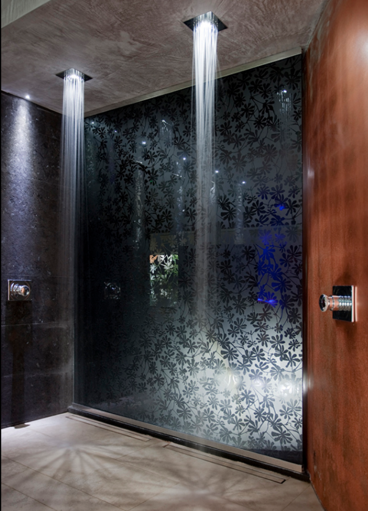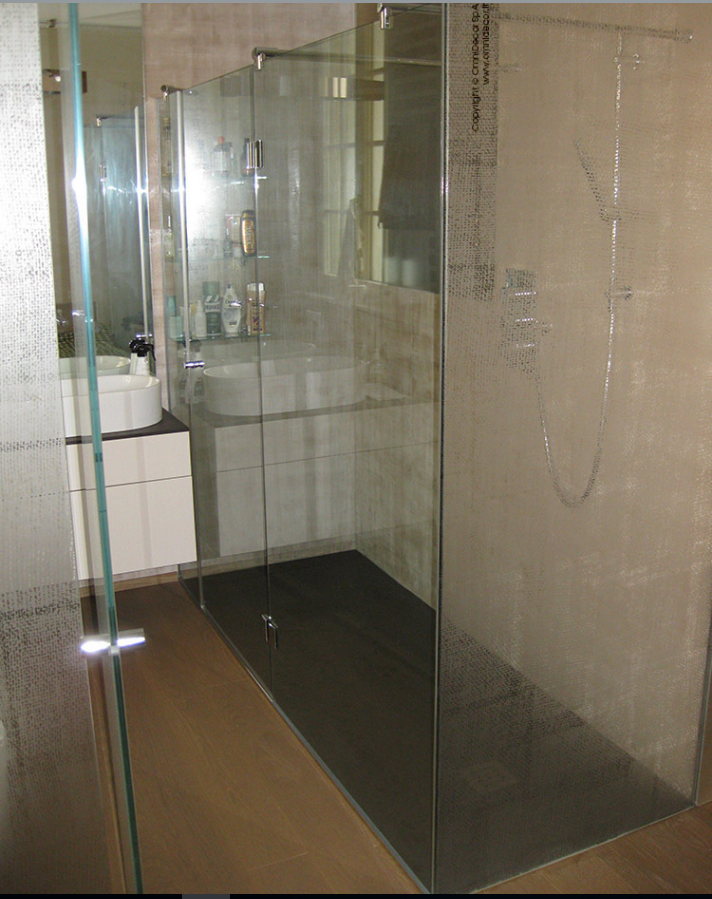 - Sono satinati all’acido. E’ una lavorazione estremamente elegante e pulita. La parte decorata viene sempre messa all’esterno del box doccia in vetro senza telaio metallico.