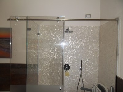 - E’ una scelta consigliata per la sua naturale eleganza e praticità. E’ importante che siamo informati prima di iniziare i lavori di questo desiderio in quanto è decisiva la posizione del diffusore d’acqua della doccia che deve essere posizionato nel modo giusto. Molto interessante da vedere, per rendersi conto, un box doccia in vetro senza porta che abbiamo eseguito in un piano mansardato.