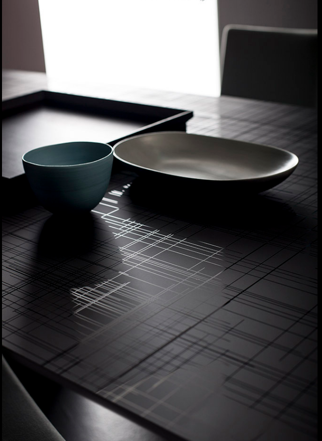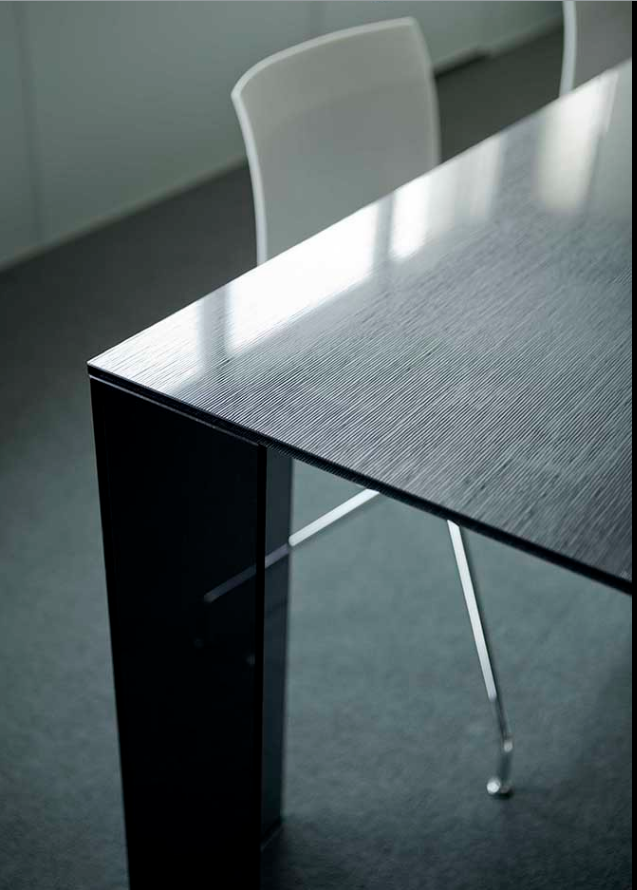 Modello di vetro satinato bronzo per rivestimento tavolo.