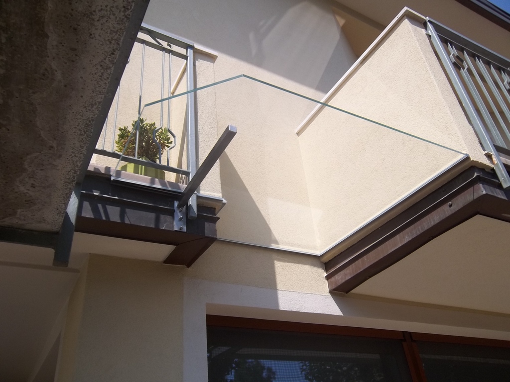 - Le pensiline con il vetro appoggiato sulle mensole è uno dei lavori più antichi del lavoro del vetraio. Tantissime case ancora oggi hanno queste tettoie in ferro verniciato, con appoggiato un vetro che una volta veniva solo stuccato e oggi invece viene siliconato.