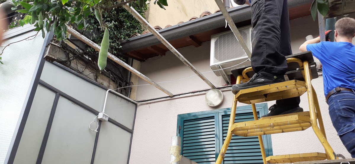 - SOSTITUZIONE VETRI VECCHIA TETTOIA CON MENSOLE IN FERRO VERNICIATO