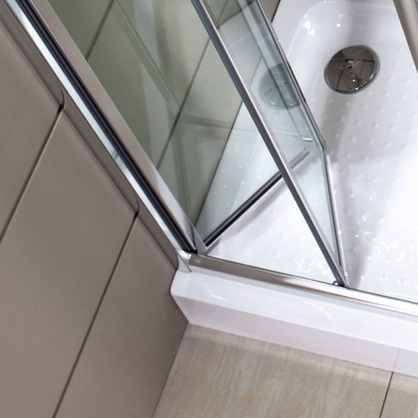 Il doppio vetro pieghevole del box doccia è per chi necessita di spazio come una persona in carrozzina.