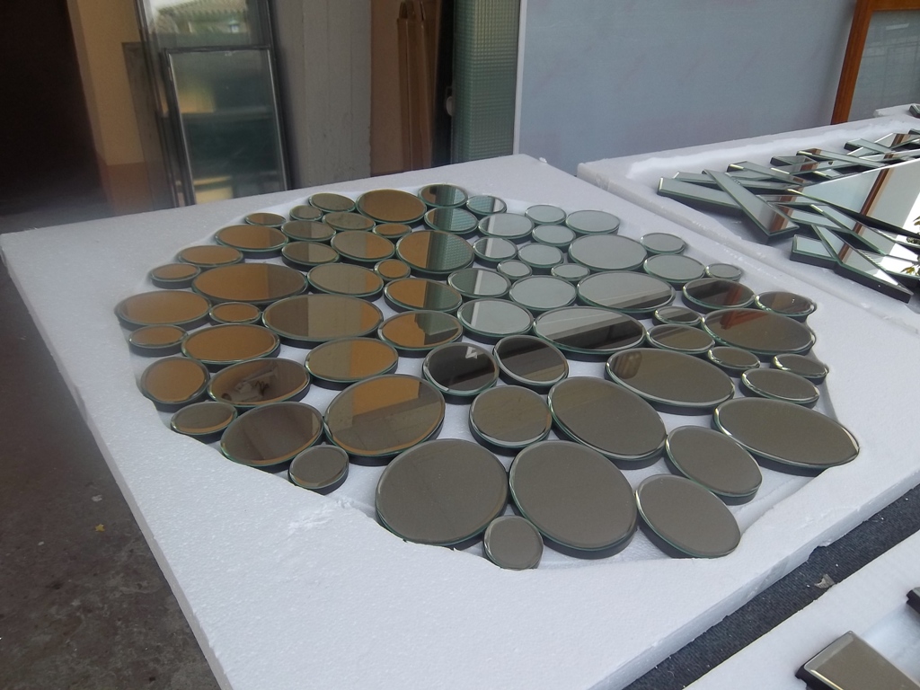 Nella foto sopra un altro specchio, unico, molato, bisellato e sagomato