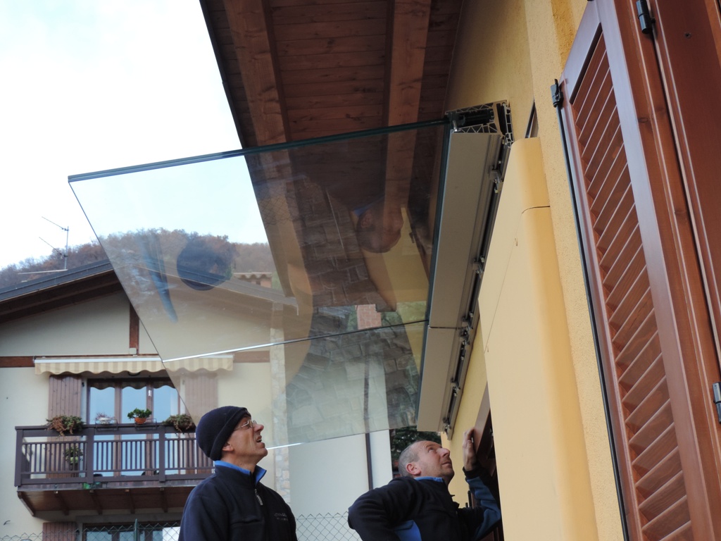 Coprire una portafinestra con una tettoia in vetro dovrebbe essere abbastanza normale perchè l’acqua di rimbalzo, oltre a sporcare il serramento, contribuisce a rovinare lo strato di colore del serramento.