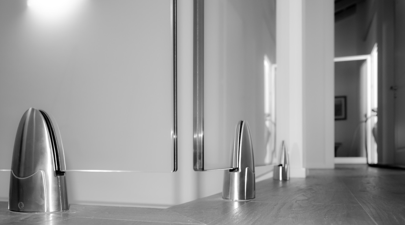 Si deve fissare a pavimento la barra continua che alloggia lo spessore della lastra e senza opere murarie e in poco tempo è possibile recintare qualsiasi tratto della casa che si desideri.