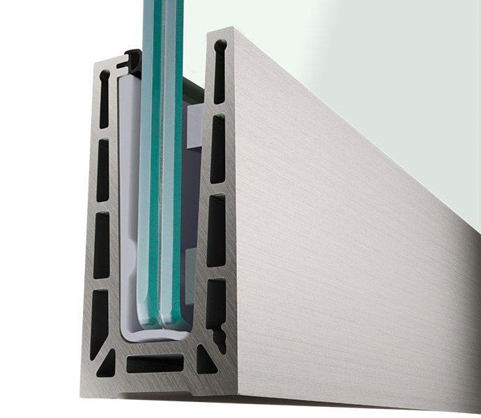 Si usa lo stesso profilo di fissaggio dei parapetti in vetro dei balconi e delle terrazze.