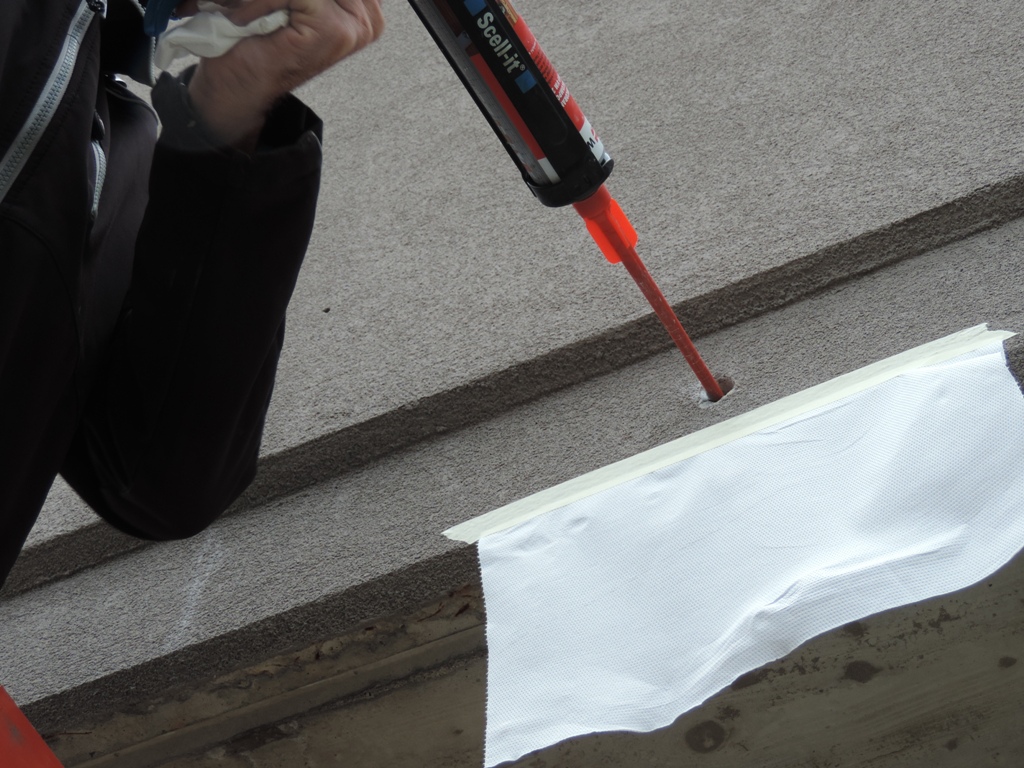 Fatto il foro dal diametro richiesto e, riparandolo da eventuali sgocciolamenti sul muro, si procede ad inserire il tassello chimico.
