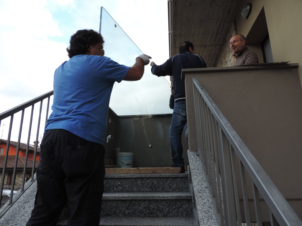 La posizione delle posa è molto complicata: si tratta infatti di un normale pianerottolo al primo piano e con poco spazio di manovra per la dimensione del cristallo.