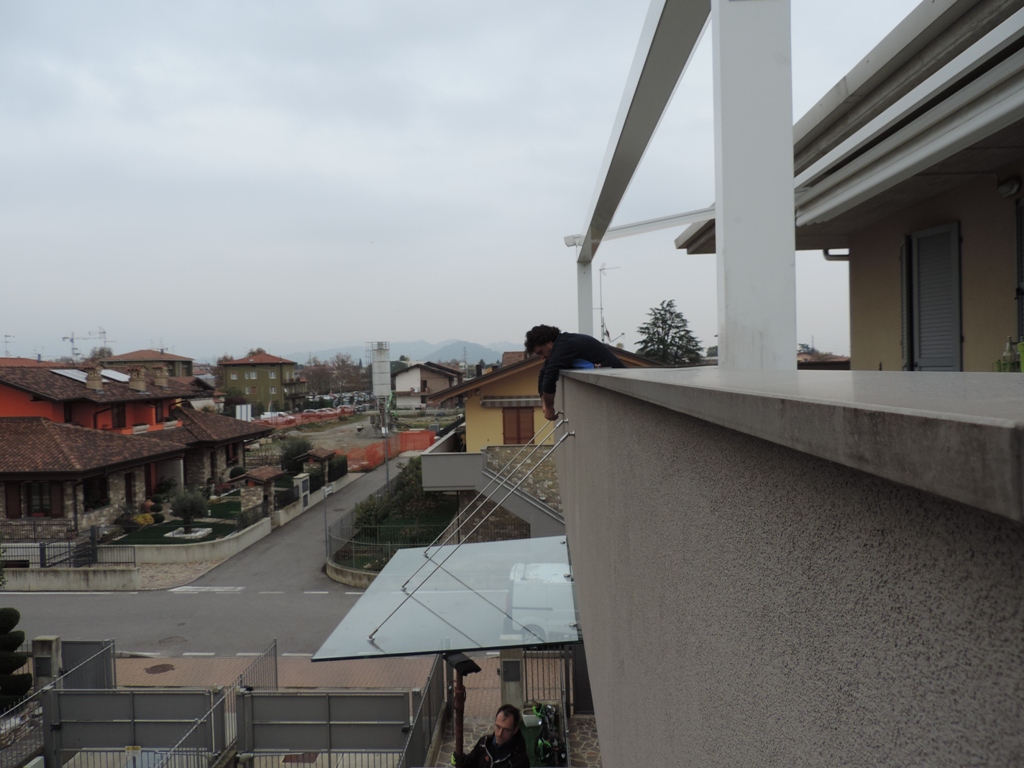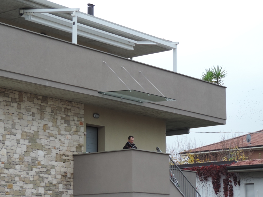 - Non riusciamo più a contare quante pensiline in vetro con tiranti abbiamo posato. Quello che preme sottolineare è che possono anche essere eseguite lungo il perimetro della casa come se fossero un portico di protezione.