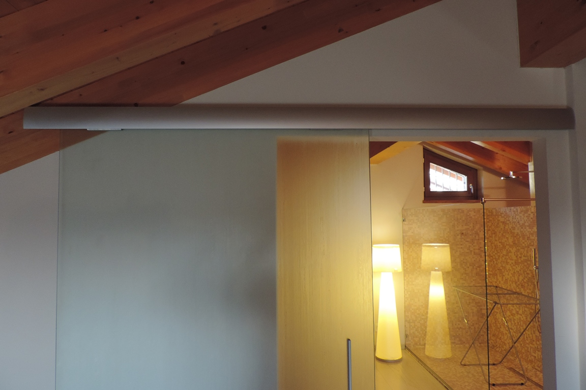 Si è optato quindi per una porta scorrevole in vetro esterna al muro.