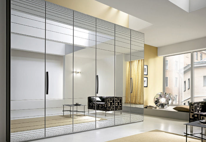 Un utilizzo degli specchi sempre più frequente è il rivestimento di mobili vari con un uso più frequente per le ante degli armadi.