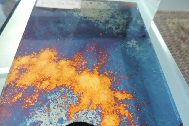 Sotto il vetro colorato è la cornice dello specchio