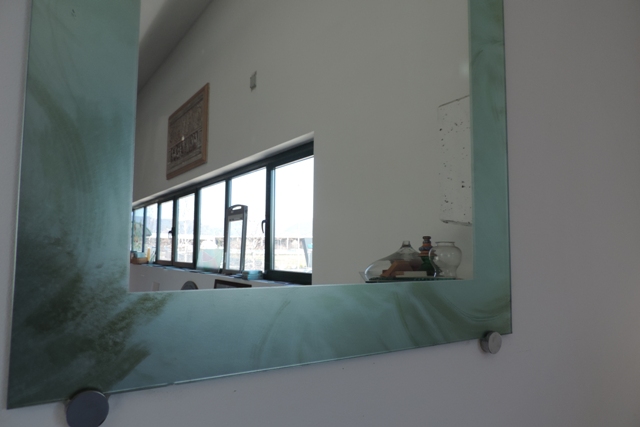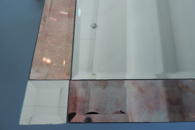 Che lo specchio sia rovinato può dipendere anche da una cattiva scelta del silicone per ancorarlo come nella foto sopra.