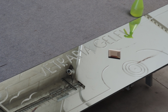 In questo caso abbiamo a magazzino lastre sufficienti per ottenere velocemente il pezzo sostitutivo. È anche l’occasione buona per ripensarlo decorandolo con le diverse tecniche di decorazione del vetro che sono applicabili anche agli specchi, come abbiamo illustrato in un precedente articolo.