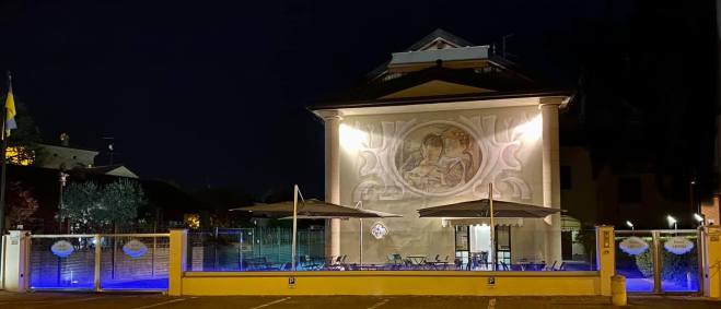 L’hotel Arpini nella sua veste diurna sopra e notturna sotto