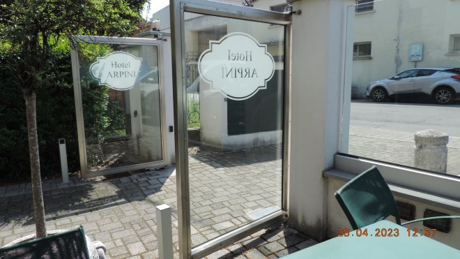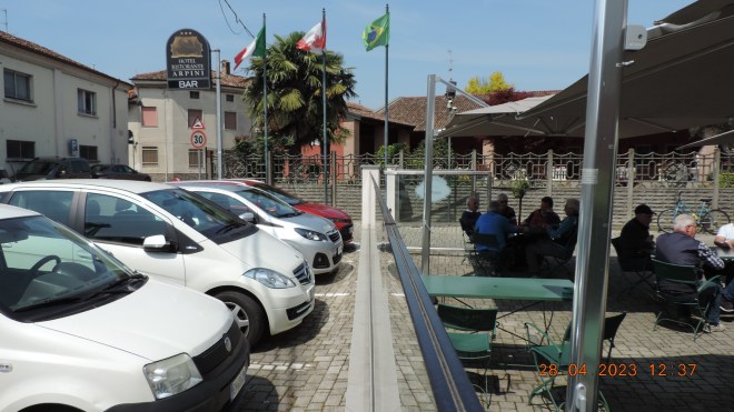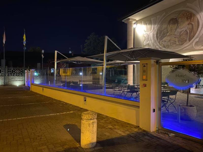 L’Hotel Arpini a Casale Cremasco [ sito, pagina facebook ] ha un ottimo e largo dehors che serve per gli ospiti dell’Hotel ma molto fruibile anche per il bar e il ristorante.