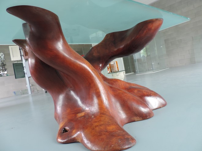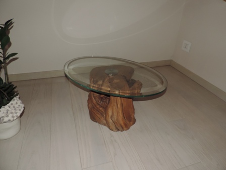 Abbiamo usato le radici di una pianta per eseguire l’appoggio del tavolo in vetro.
