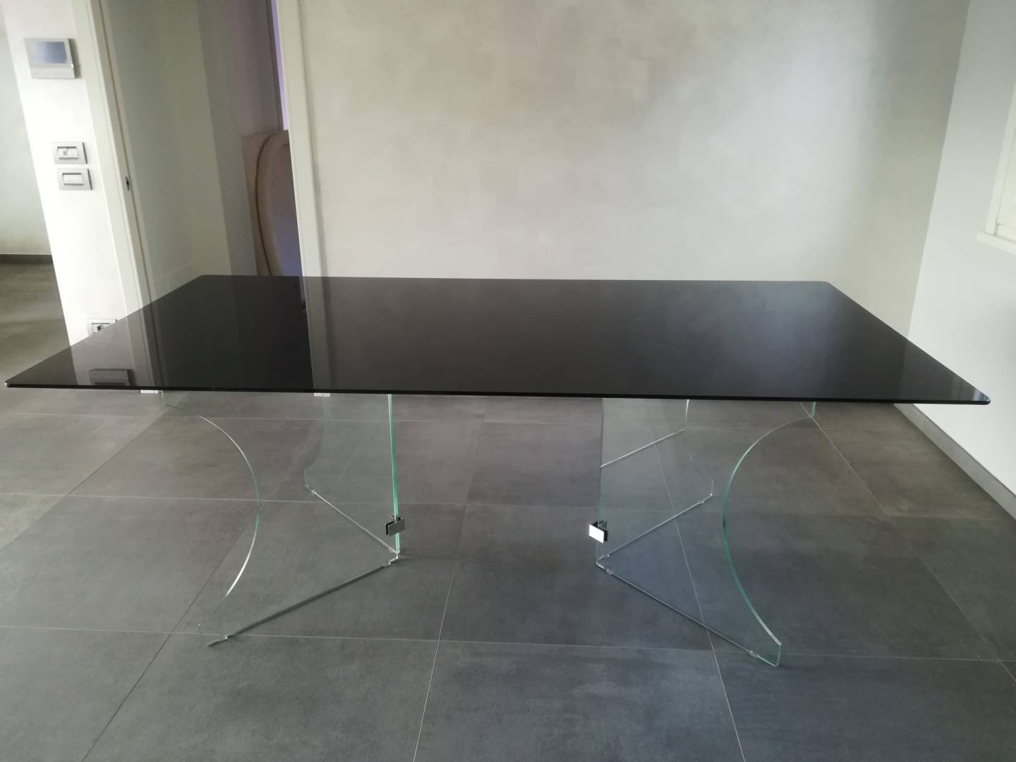 Il piano in vetro del tavolo ovviamente rimane tale e quale, ma può essere in vari modi lavorati.
