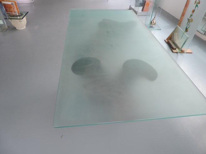 Questo tavolo in cristallo è esposto nel nostro showroom ed è in vendita per chi è interessato.