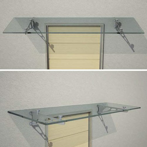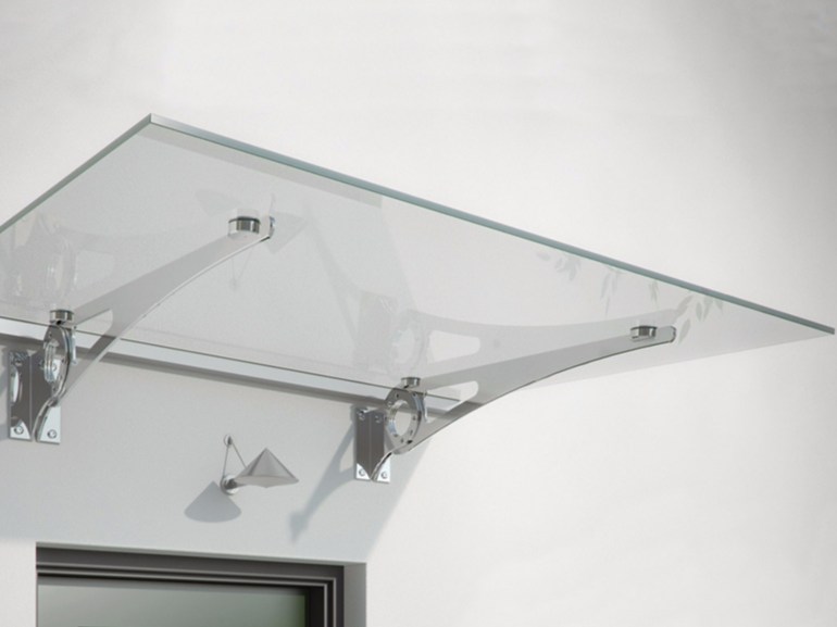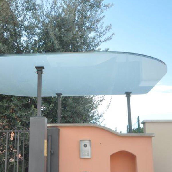 La pensilina in vetro con mensola o sostegno è sicuramente la più diffusa e la più adatta ad essere interpretata con diverse soluzioni.