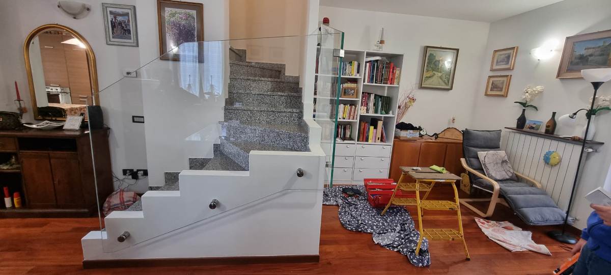 - Sostituzione ringhiera in ferro e chiusura vano scala con vetro